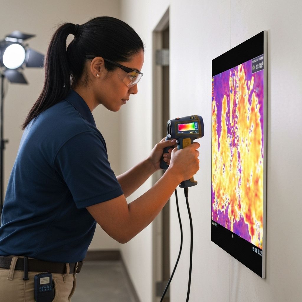 Advanced infrared cameras detect temperature variations indicating moisture and leaks behind walls.